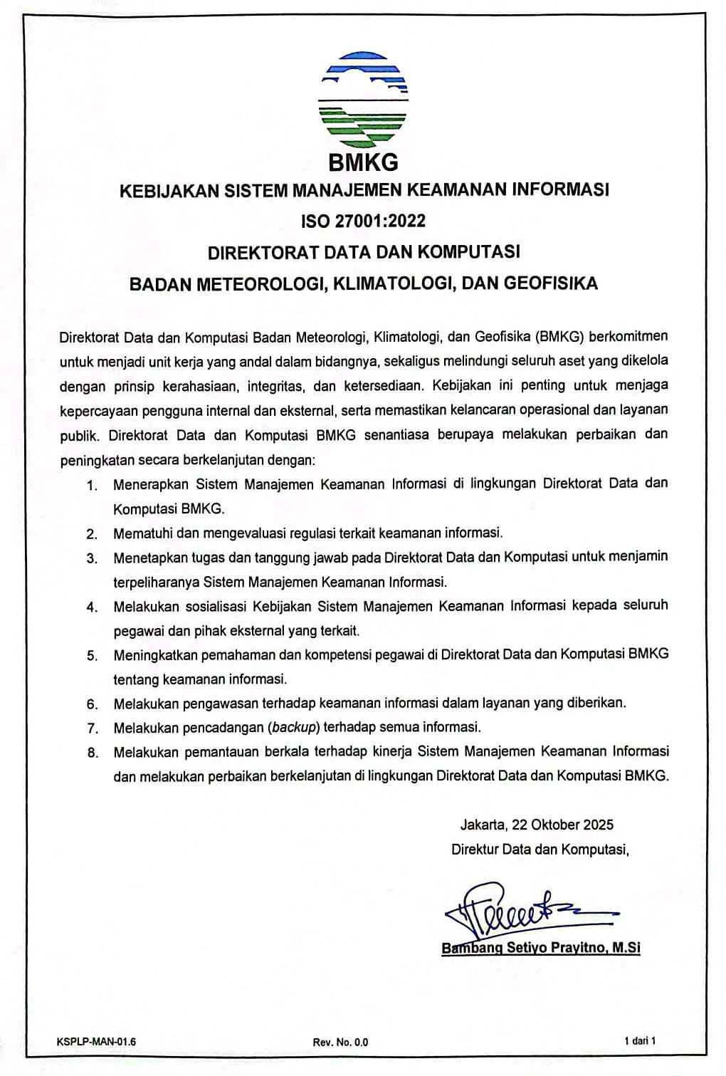 Manual Alur Layanan PTSP BMKGKebijakan Sistem Manajemen Keamanan Informasi ISO 27001: 2022 Kebijakan SMKI